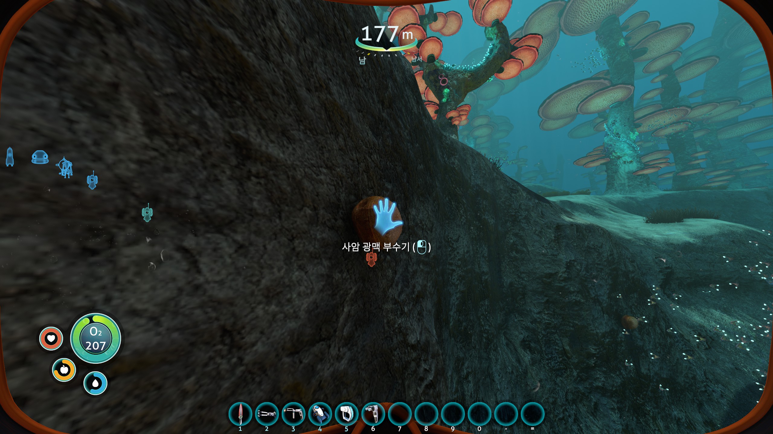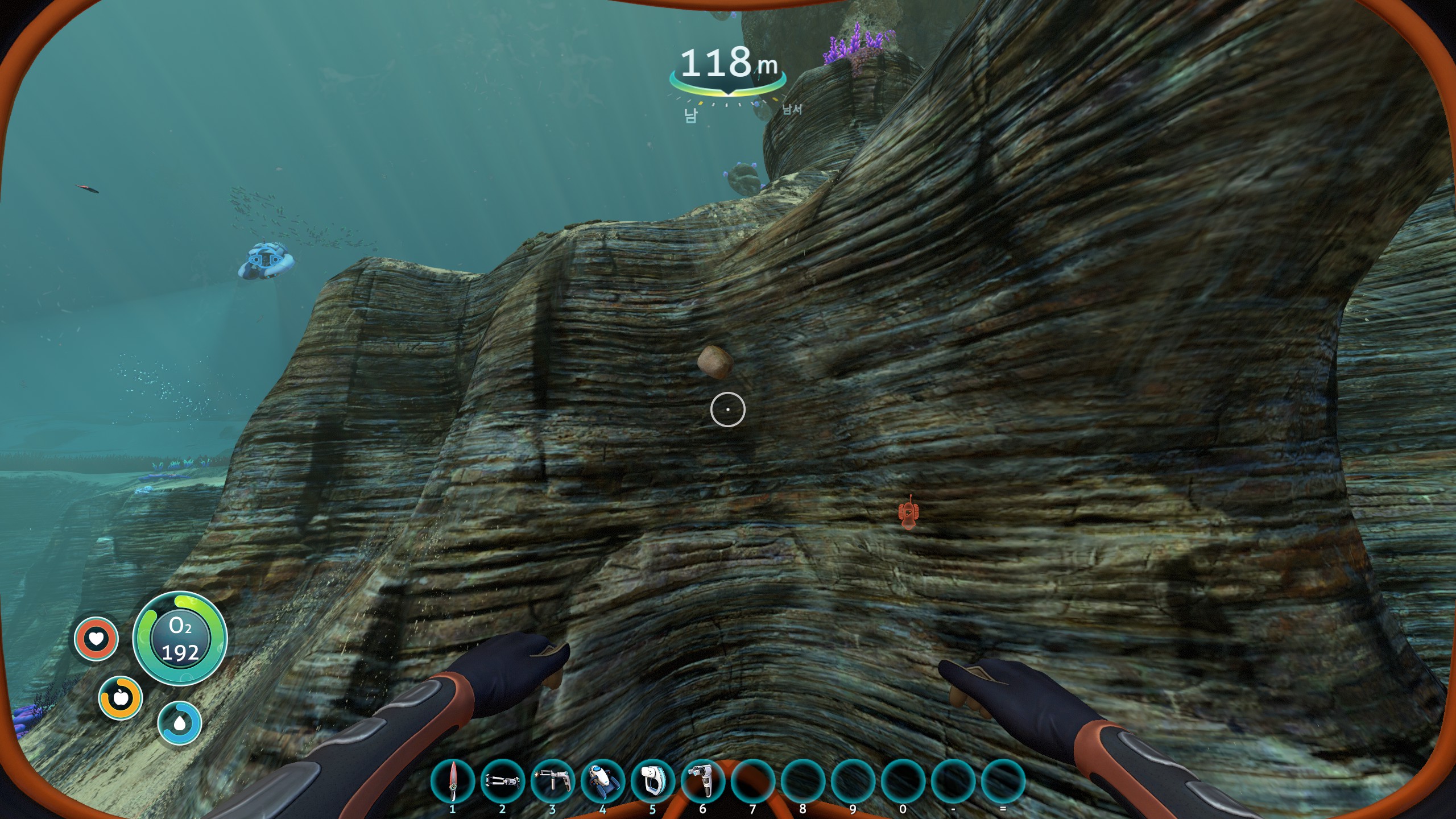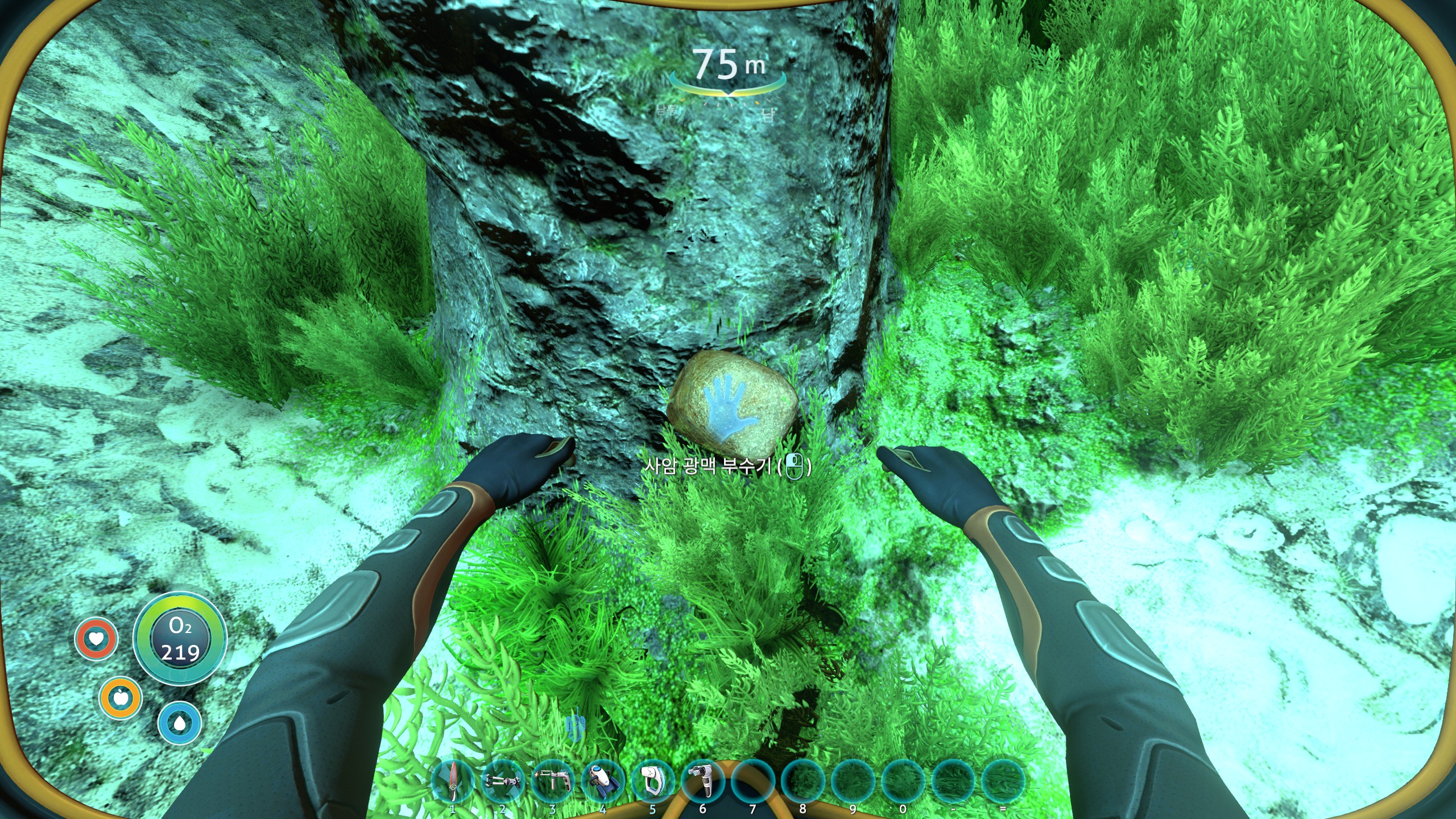 바닥이나 벽은 풀이랑 미역때문에 잘 안보여서 불편하다 싶으면 동굴을 찾아서 파밍하면 된다.