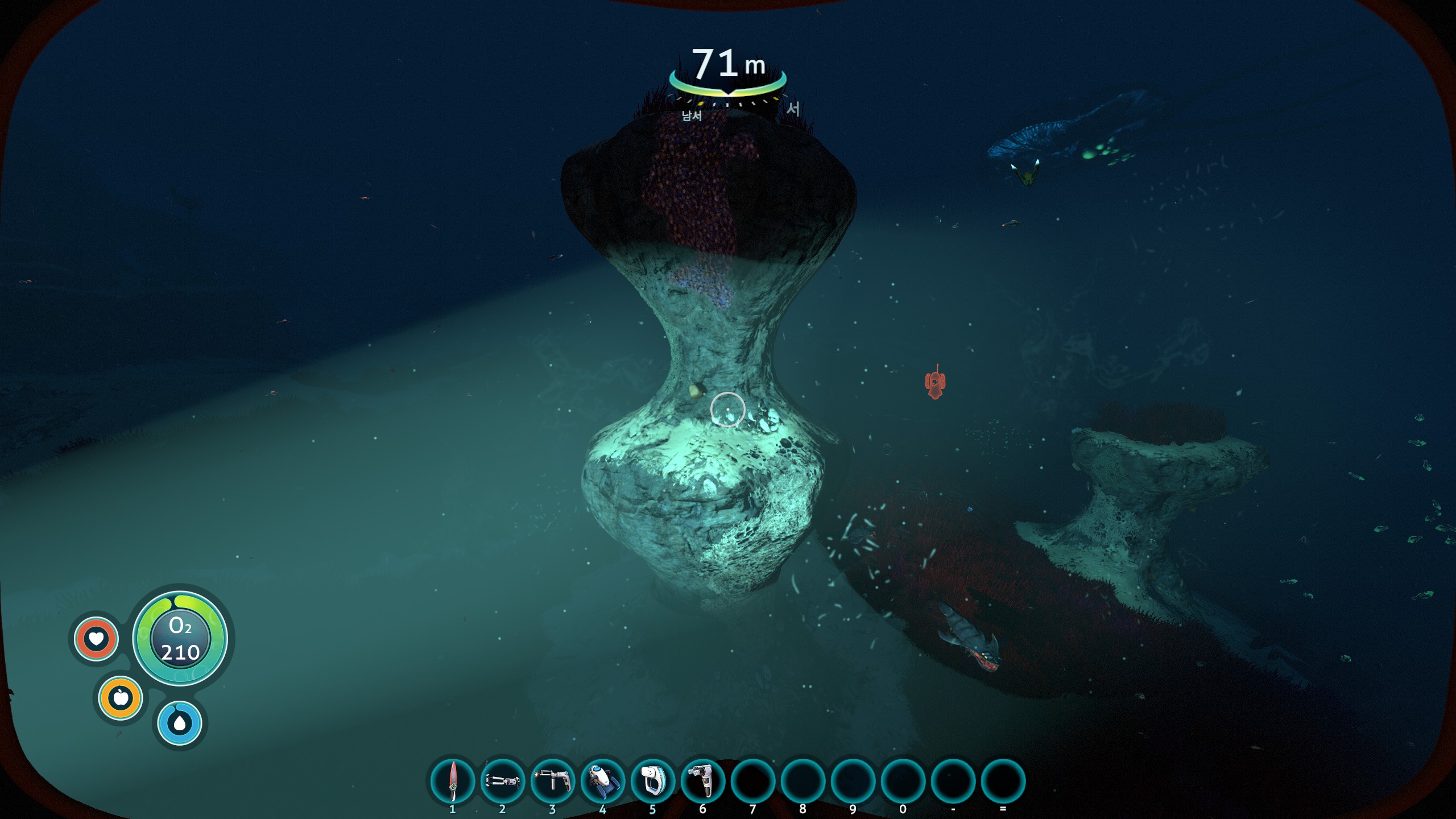 여기서는 적대적 생물인 추적자와 메스머만 조심하면 되는데, 추적자는 씨글라이드보다 느리니까 어그로 끌리면 그냥 씨글라이드 들고 도망가면 되고