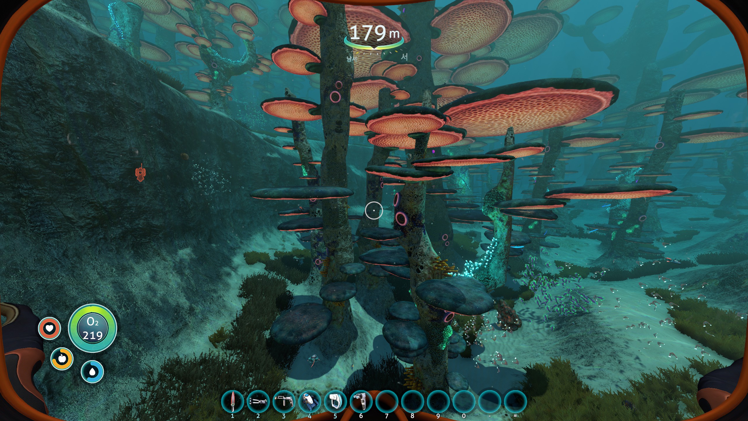 버섯 숲에서는 뼈상어라는 적대적 생물이 나오는데, 얘네도 씨글라이드보다 느리니까 어그로 끌렸을때 바로 도망가면 된다.
