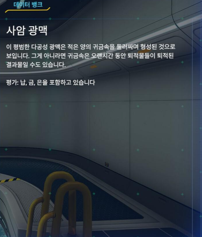 초반에 제일 많이 돌아다니게 되는 안전한 여울(Safe Shallows) 에서도 사암 광맥이 나오긴 하지만 잘 안나온다.