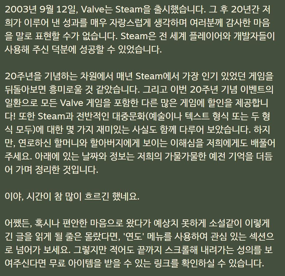 뭐 아무튼, 스팀 20주년 축하합니다.