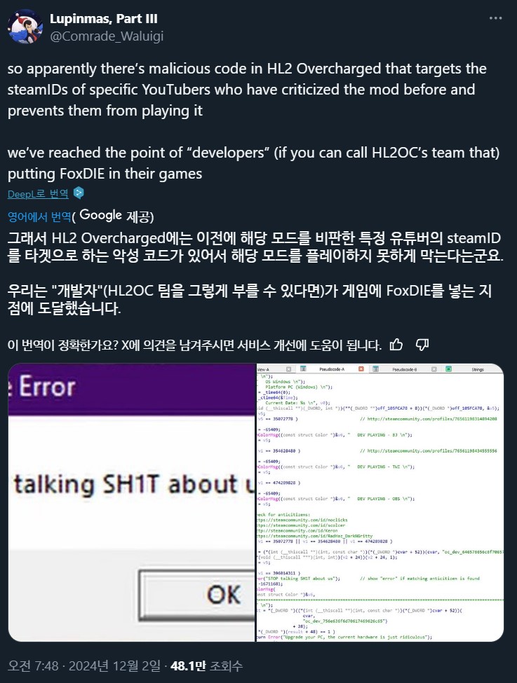 트윗 출처: https://x.com/Comrade_Waluigi/status/1863354606757069134