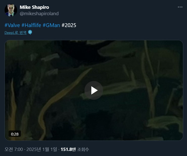 성우가 올린 #Valve #Halflife #GMan #2025 해시태그와 이 영상 때문에