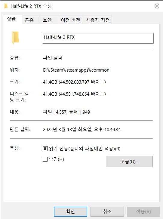 현재 스팀에서 설치하려면 80기가가 필요하다고 나오는데, 실제 용량은 41GB입니다.