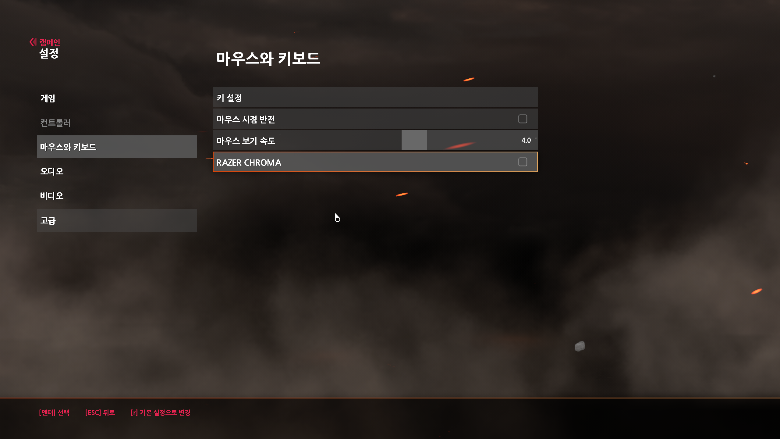 레이저 크로마 옵션 : 키면 프레임 저하 된다는 얘기가 있다고 해서 끄긴 했지만 정확히 알수는 없음