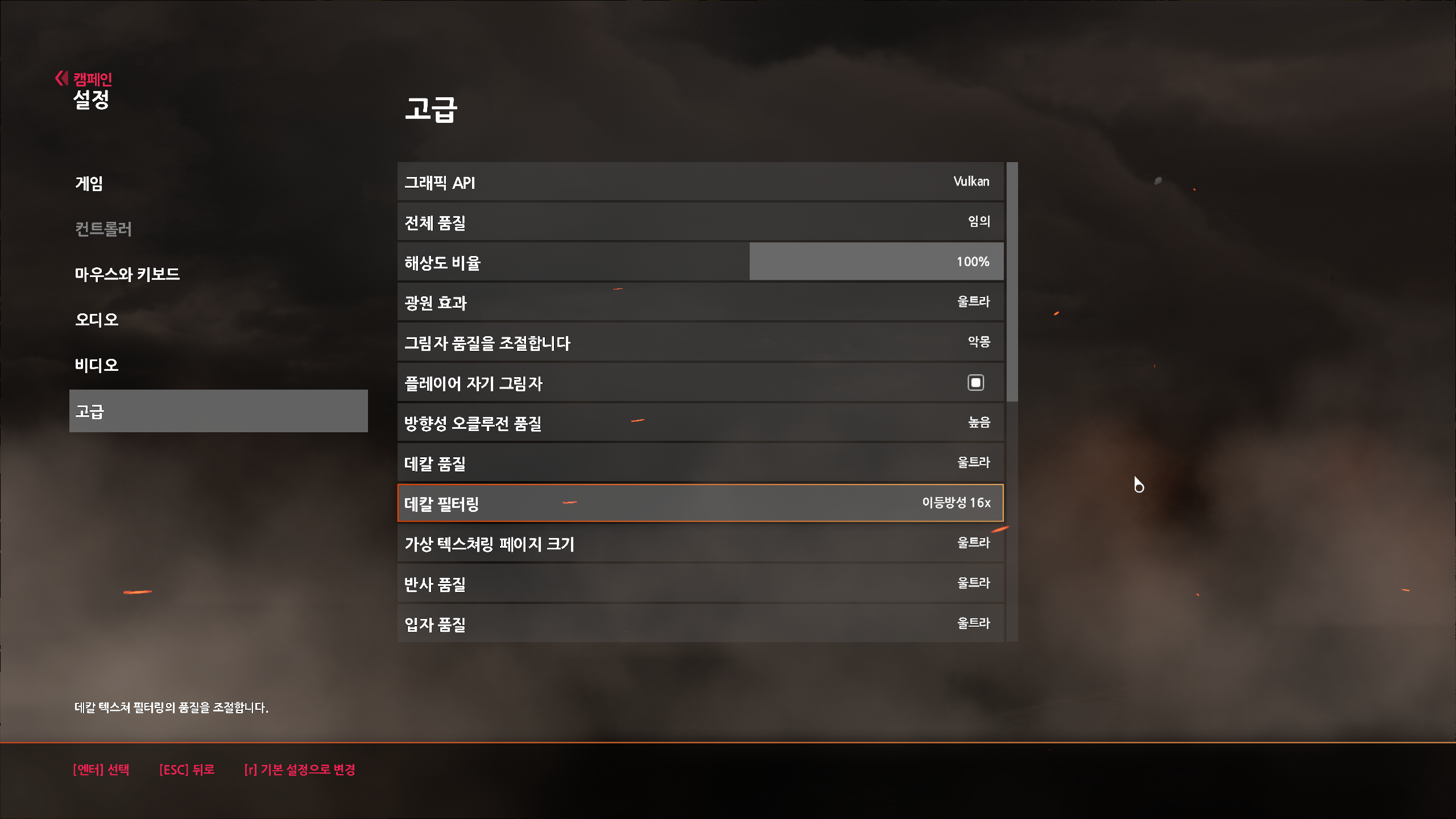 그래픽 API : 웬만하면 불칸. 특히 불칸 설정은 AMD 그래픽 카드에서 성능향상이 더 잘된다고 함