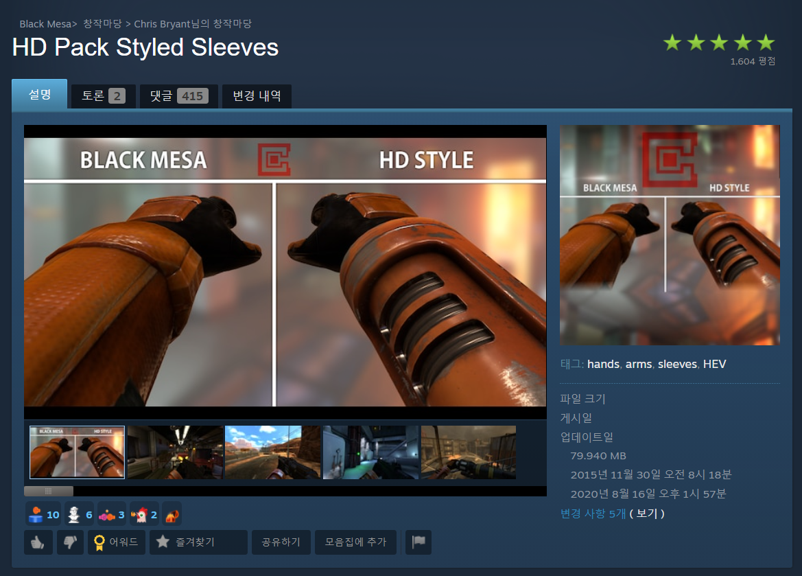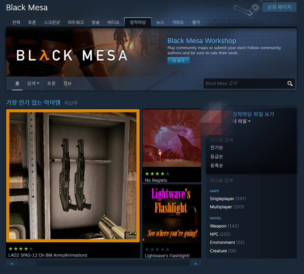 다른 게임들의 창작마당 에서는 구독만 하면 거의 다 적용되는데 블랙 메사 창작마당에서는 구독만 했을경우에는 적용이 안되는 모드들이 꽤 있다.