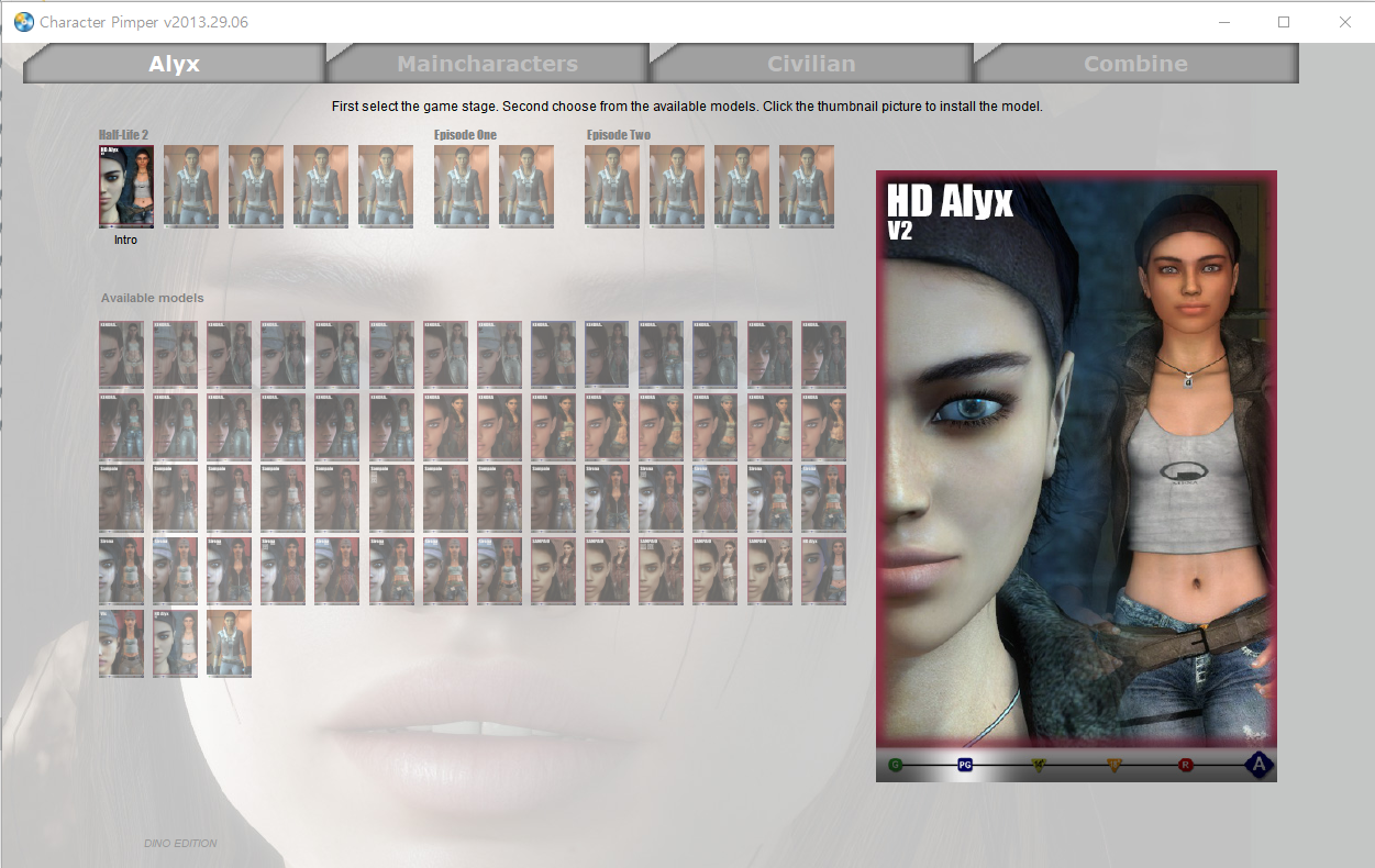 이렇게 캐릭터 모델들을 설정해줄수 있는 창이 뜬다.