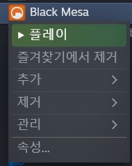 스팀 라이브러리에서 블랙 메사 우클릭→속성