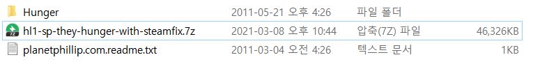 압축 파일을 받고 압축을 풀면 Hunger 라는 폴더가 나오는데, 이 폴더를 복사해서 하프라이프가 설치된 폴더에 붙여넣기만 하면 된다.