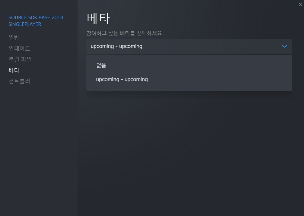 설치 후 라이브러리에 있는 Source SDK base 2013 Singleplayer를 우클릭 하고 속성에 들어간 다음에