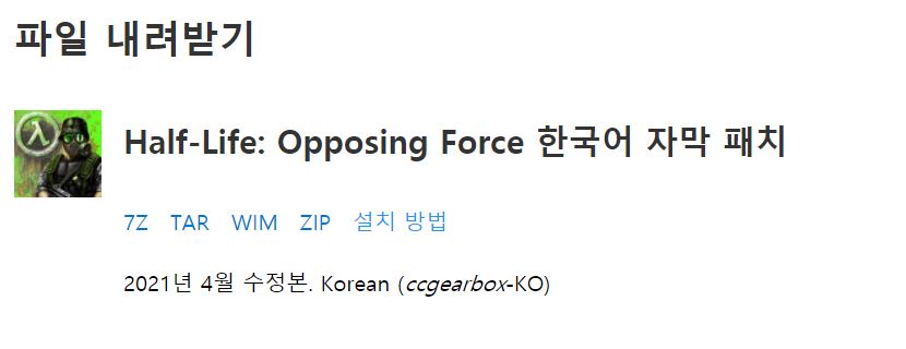 파일 내려받기 Half-Life: Opposing Force 한국어 자막 패치 7Z TAR WIM ZIP ...