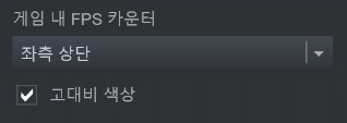 '게임내 FPS 카운터'에서는 프레임(FPS) 을 표시할 위치를 고르면 되고