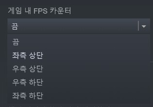 '게임내 FPS 카운터'에서는 프레임(FPS) 을 표시할 위치를 고르면 되고