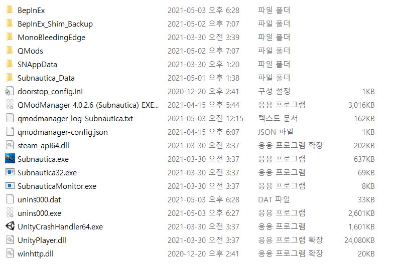 마지막으로, 대부분의 서브노티카 모드들은 QMods 폴더에 넣기만 하면 거의 다 적용되는 모드기 때문에