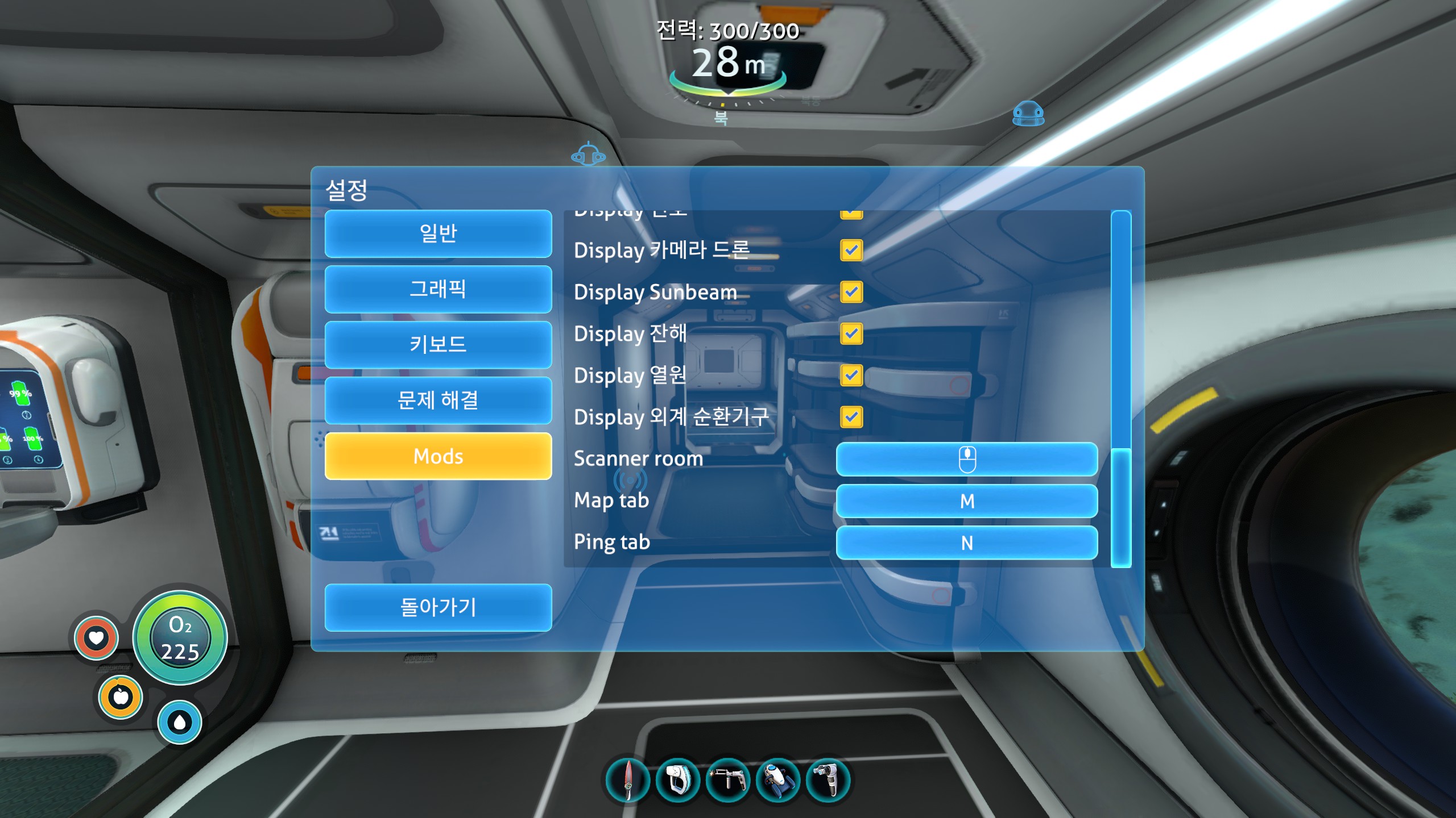 그리고 서브노티카에 원래 있는 기능인, 신호기나 탈것 표시 ON, OFF와