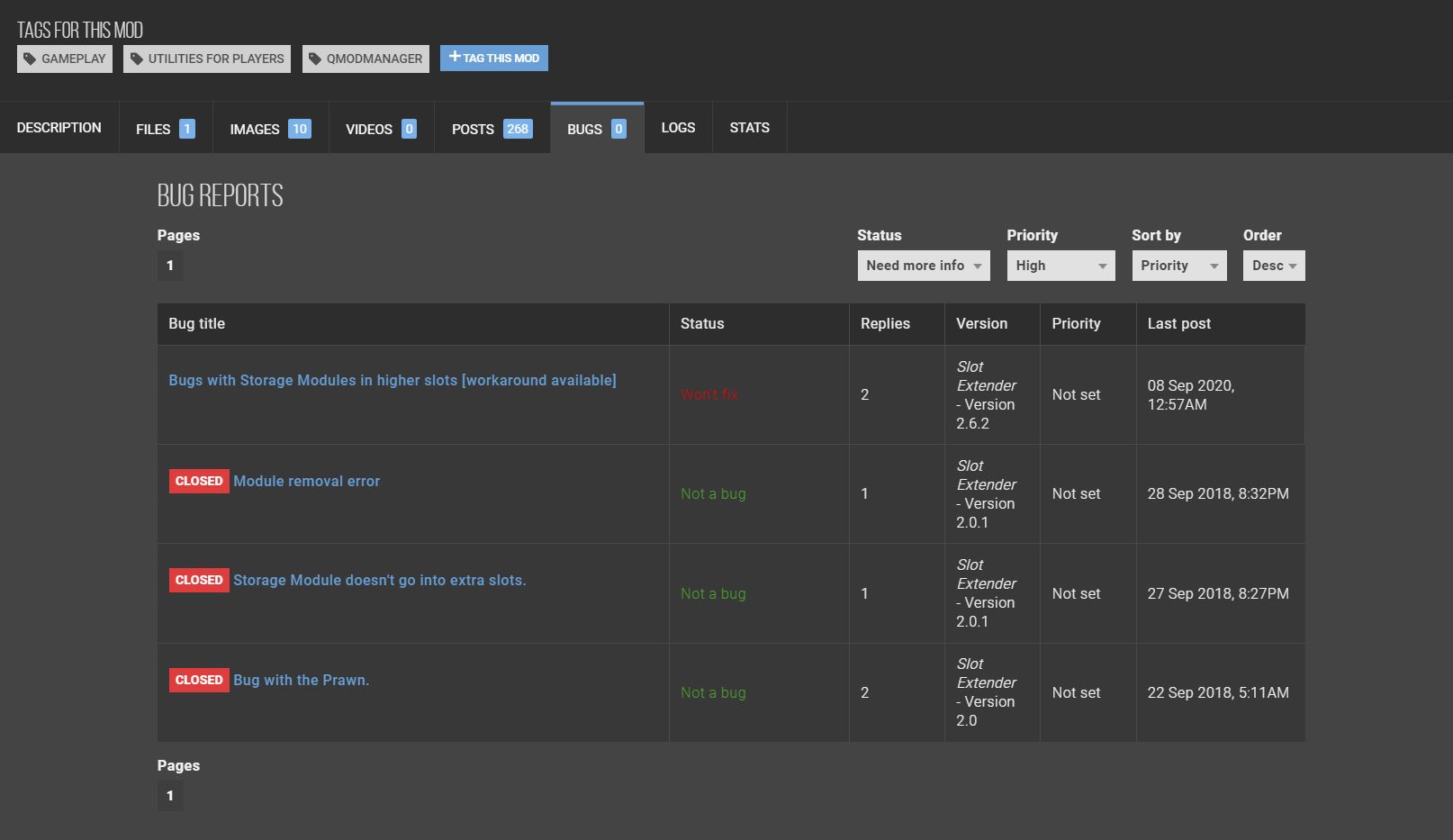 어떤 버그 리포트가 있는지 한번 훑어본 뒤, 큰 문제가 될만한 버그 리포트가 있다면 이 모드를 설치할지 말아야할지 고민해보는게 좋다.