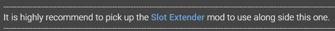 마지막으로, 모드 제작자가 Slot Extender 모드와 같이 쓰는걸 권하고 있으니