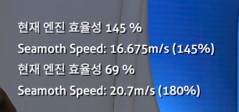 위 사진처럼 스피드 부스트 모듈을 장착 했을 경우 화면 좌측 상단에 스피드가 올라갔다는 메세지와 동시에 엔진 효율이 내려갔다는 메세지가 뜬다.