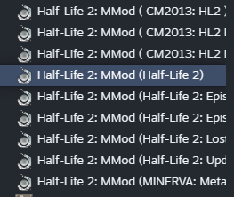 예시) 하프라이프 2는 HL2MMod_HL2 - Custom 폴더, 하프라이프 2 에피소드 1 이면 HL2MMod_EP1 - Custom 폴더